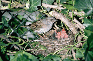 L’Accenteur mouchet est un hôte fréquent du Coucou gris (Cuculus canorus) en dépit des œufs pourtant très différents dans chaque espèce.