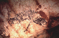 Comme les autres animaux peints sur ce plafond, il est en partie recouvert de cristallisations de calcite blanche, notamment sur l'arrière-train.