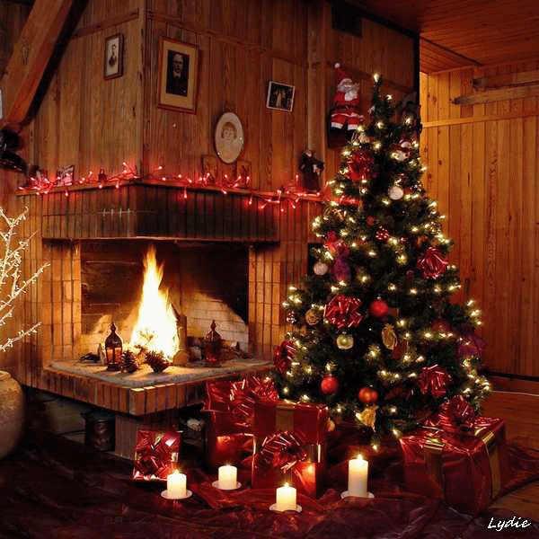 Encore une créa bien chaleureuse et beau le décor de rouge et de doré et ton feu est réussi !! bon réveillon Lydie et gros bisousje te prends cette superbe animation pour mettre en image à la première page à droite sur mon blogmerci