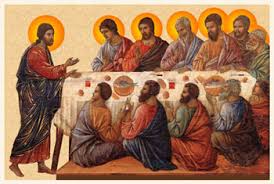 À l’église, nous faisons mémoire du dernier repas de Jésus avec ses apôtres. Nous refaisons le rite d’amour du lavement des pieds. Nous méditons les paroles fondatrices de Jésus lorsqu’il prit le pain et le vin : « Ceci est mon corps livré pour vous »; « Ceci est mon sang versé pour vous ».