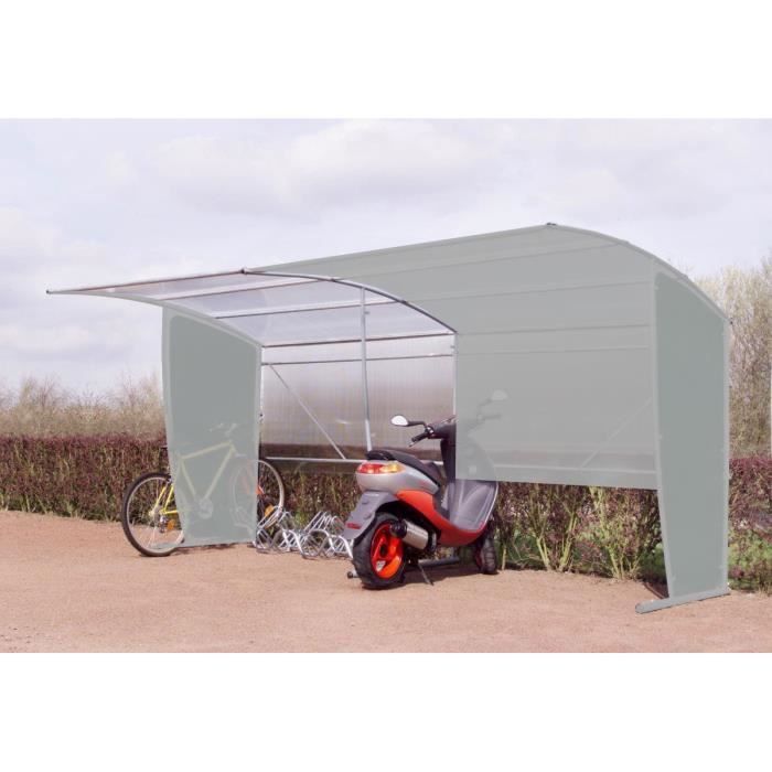Abri Multi usages économique et esthétique Modulable par élément de 2.2 m ? l?infini Toit en polycarbonate alvéolaire d?ép. 6mm traité anti UV transparent Tube diam?tre 30 mm/2 galvanisé ? chaud Produit complet livré avec 2 joues latérales (Tôle poudrée v