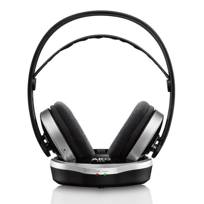AKG K915 Casque TV sans-fil - Casque audio avec transducteurs dynamiques, diamètre 40 mm, impédance 32 Ohms - Couplage : circum-aural - Contrôle du volume sur le casque - Fréquence : 2,4 GHz - Portée utile : jusqu'à 30 mètres - Plage de fréquence : 18 Hz - 16 kHz - Rapport signal/bruit IHF-A) : >75 dB - Sensibilité : 110 dB SPL/V - Latence du signal : < 80 ms - Entrée stéréo RCA - Autonomie : jusqu'à 8 heures