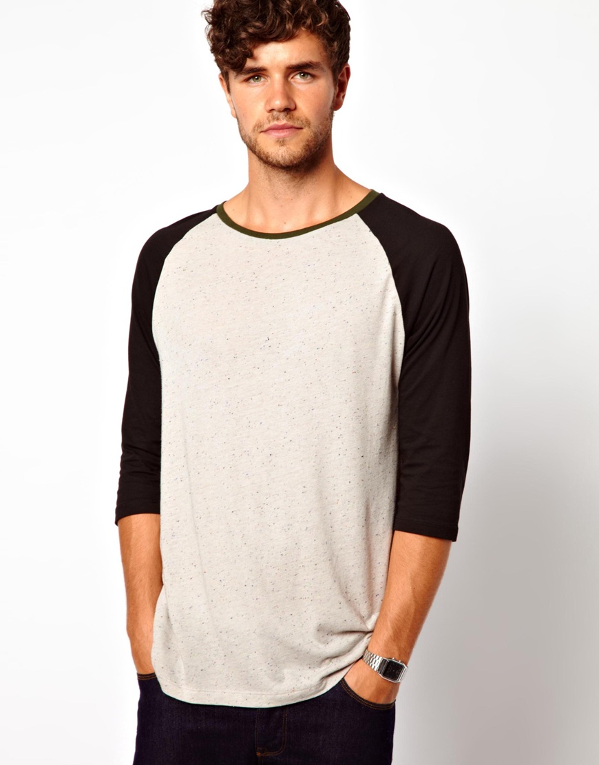 • ASOS - T-shirt en jersey moucheté à manches raglan longueur 3/4 contrastantes