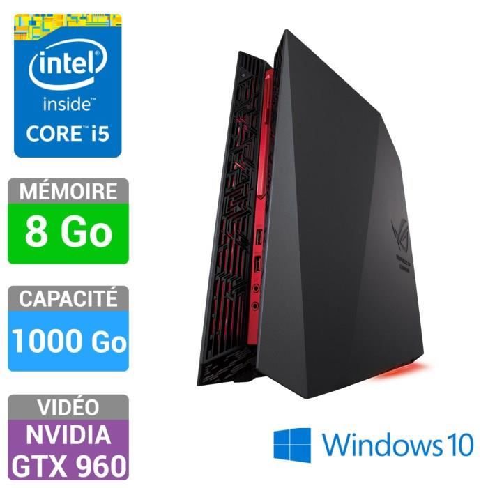 Ordinateur de bureau Republic Of Gamers - Processeur Intel® Core? i5-6400 - Mémoire 8Go - Stockage 1000Go 7200rpm - NVIDIA GeForce GTX960 2Go dédiés - Graveur DVD - Clavier AZERTY et Souris filaires Gaming - Windows 10 - Garantie 1 an