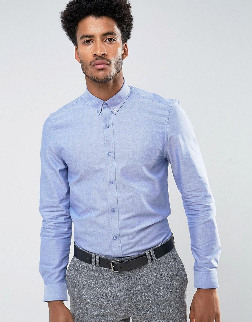 Ben sherman - - Chemise Oxford unie coupe slim - Bleu