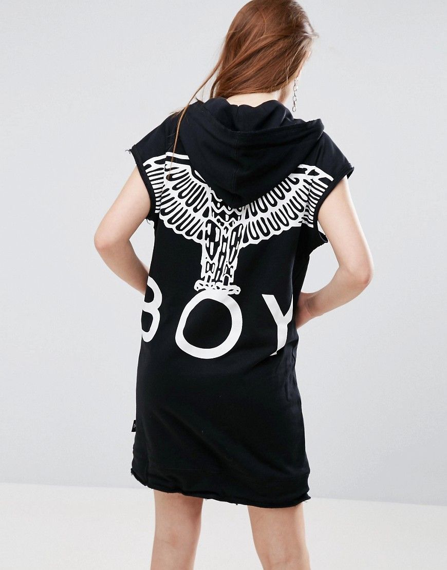 • Boy London - Sweat à capuche long avec imprimé aigle dans le dos - Noir