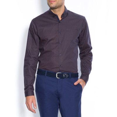 • Chemise imprimé cravate petit col boutonné manches longues coupe slim