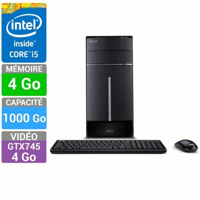Ordinateur de Bureau - Processeur Intel® Core(TM) i5-4460 - Mémoire 4Go - Stockage 1000Go - NVIDIA® GeForce® GTX 745 4Go dédiés - Lecteur de cartes SD - Lecteur-Graveur DVD-RW Super Multi - 2 ports USB 3.0 - 4 ports USB 2.0 - 1 Port DVI - 1 port HDMI - Ethernet - Clavier AZERTY et souris USB - Windows 8.1 64 bits - Garantie 1 an