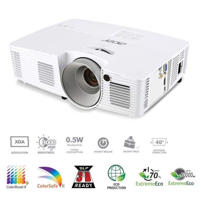 ACER X123PH Vidéoprojecteur XGA 3D Ready - Technologie Acer ColorBoost II+ - Technologie Acer ColorSafe II - DLP® 3D Ready - Résolution native XGA (1024 x 768) - Luminosité 3000 lumens, rapport de contraste 17.000:1 - Technologie Acer EcoProjection - Longévité de la lampe jusqu'a 10.000 heures en mode ExtremeEco - Acer SmartFormat - Closed Caption