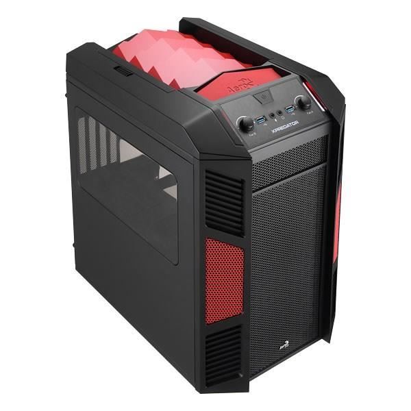 Boitier PC Mini tour - Pour carte mere Micro ATX / Mini ITX - 4 slots d'extension - Ventilateurs inclus 200mm Led et 140mm - 2x USB3.0 Audio HD - Rhéobusx2 - Emplacement 1x5,25"/3x3.5"/5x2.5" - Coloris Noir/Rouge - Porte vitrée - Dimensions 268x380x350 mm - Longueur max. carte VGA 320mm et Hauteur ventirad max. 162 mm