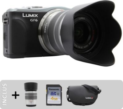 • Appareil photo hybride PANASONIC DMC-GF6 noir + 14-42+45-150 mm + Etui+SD