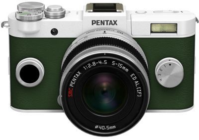Pentax - Appareil photo hybride Q-S1 Blanc/Kaki + 5-15 mm + Protection ESSENTIELB Green Land T14 + Carte SD ESSENTIELB SDHC 16Go Classe 10