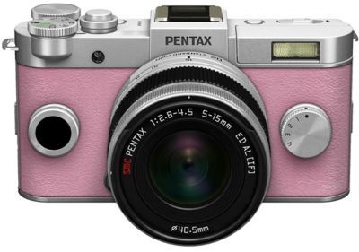 Pentax - Appareil photo hybride Q-S1 Silver/Rose + 5-15 mm + Protection ESSENTIELB Green Land T14 + Carte SD ESSENTIELB SDHC 16Go Classe 10