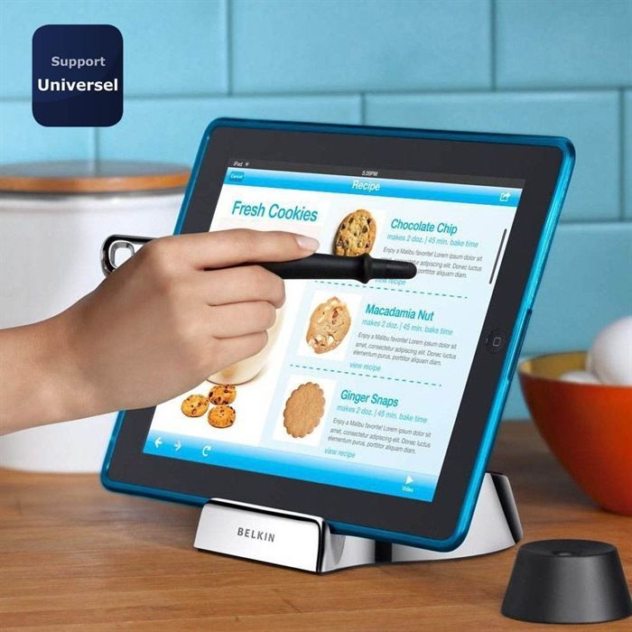 Support pour tablettes - Revetement métal - Position verticale ou horizontale pour trouver parfaitement sa place sur un bureau ou un plan de travail - Stylet ergonomique - Livré avec son socle - Compatble toutes tablettes - Garantie 3 ans