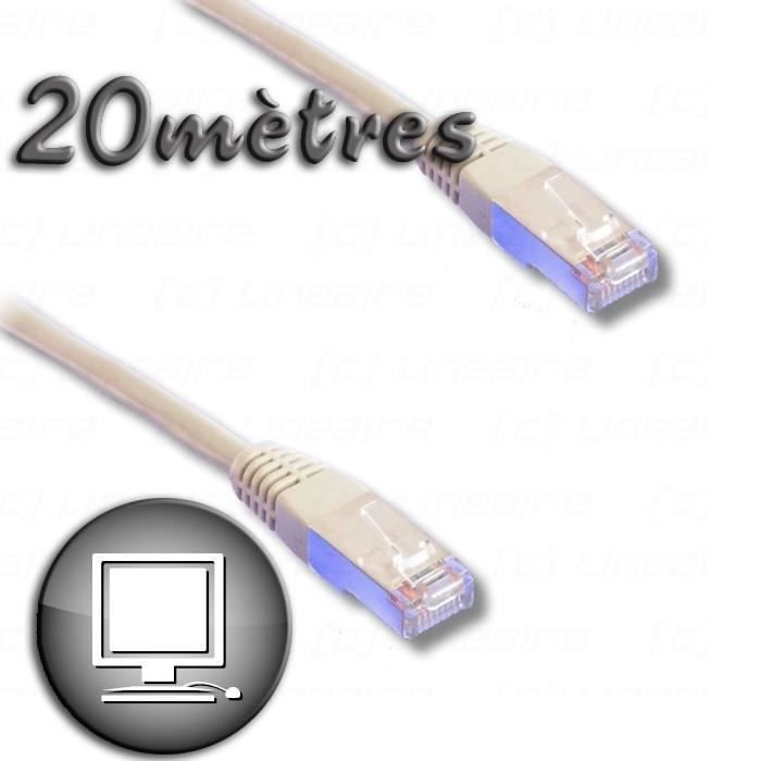 Câble RJ45 cat.6 blindé FTP 20m Permet de relier entre eux, pour une liaison informatique, tout appareil équipé d'embases RJ45 (box ADSL, ordinateur, console de jeux, TV connectée, disque dur multimédia, amplificateur Home Cinéma...)
