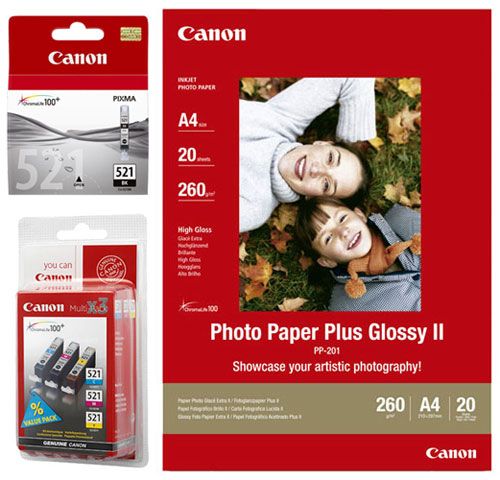 • Cartouche Canon CLI-521 Multipack + Cartouche Canon CLI-521 Noire + Canon Papier photo A4