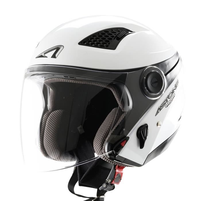 Astone Casque Jet - Coque Polycarbonate - 4 aérations - écran solaire - Visiere préparée Pinlock - Fermeture : boucle micrométrique - liner et mousses de joues amovibles pour un nettoyage facile - Norme ECER22-05