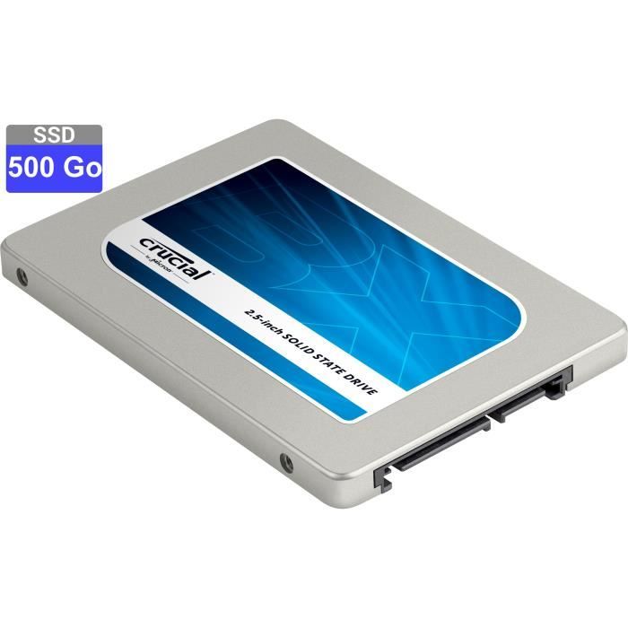 Disque dur BX100 - Capacité 500Go - Format 2,5" 7mm - Contrôleur Silicon Motion SM2246EN - Interface SATA III - Vitesse de lecture 535Mo/s - Vitesse d'écriture 450Mo/s - Lecture aléatoire 4Ko 90 000 IOPS - Ecriture aléatoire 4Ko 70 000 IOPS - Type de mémoire : flash NAND 16nm Micron® - Réf. CT500BX100SSD1