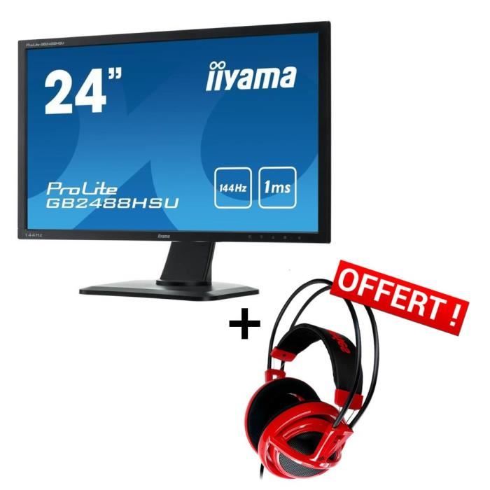 Iiyama - Ecran 24" ProLite GE2488HS-B1 + casque Steelseries Siberia V2 Red OFFERT