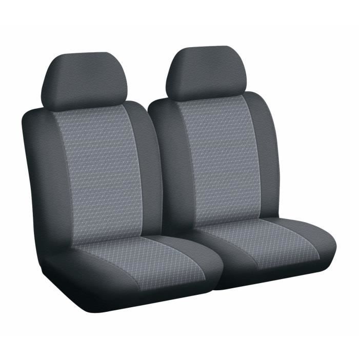 Housse sur mesure utilitaire Renault Kangoo (de 10/1997 a  12/2007) respecte la forme d'origine - Systeme de montage rapide breveté - Effet housses d'origine - Compatibles avec les airbags par fil fusible - Parements en SIMILI-CUIR gris clair et partie centrale en tissu gris moyen moussage haut de gamme 5mm.