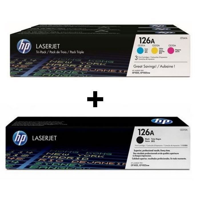 • HP Toner 126A Pack 3 couleurs + HP 126A Noir