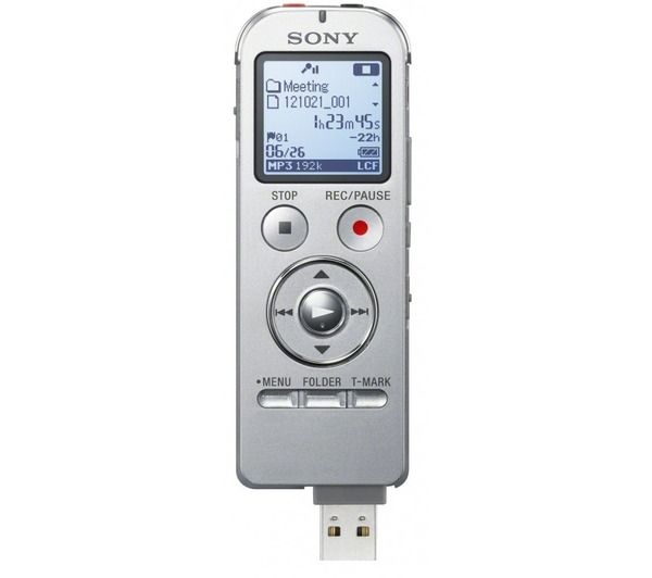 Sony ICDUX533.Temps d'enregistrement maximal: 1073 h, Mode d'enregistrement: LPCM, Audio formats supported: AAC, LPCM, MP3, WAV, WMA.Mémoire interne: 4096 Mo.Écran: LCD.Énergie de sortie: 90 mW, Diamètre du haut-parleur: 20 mm.Interface: USBMicrophone et écouteurs stéréo, USB, enregistrement mp3, lecture mp3/WMA/WAV/AAC, 4 Go, emplacement pour carte mémoire- Un appareil pour stocker tous vos contenus- Enregistrement en stéréo haute qualité