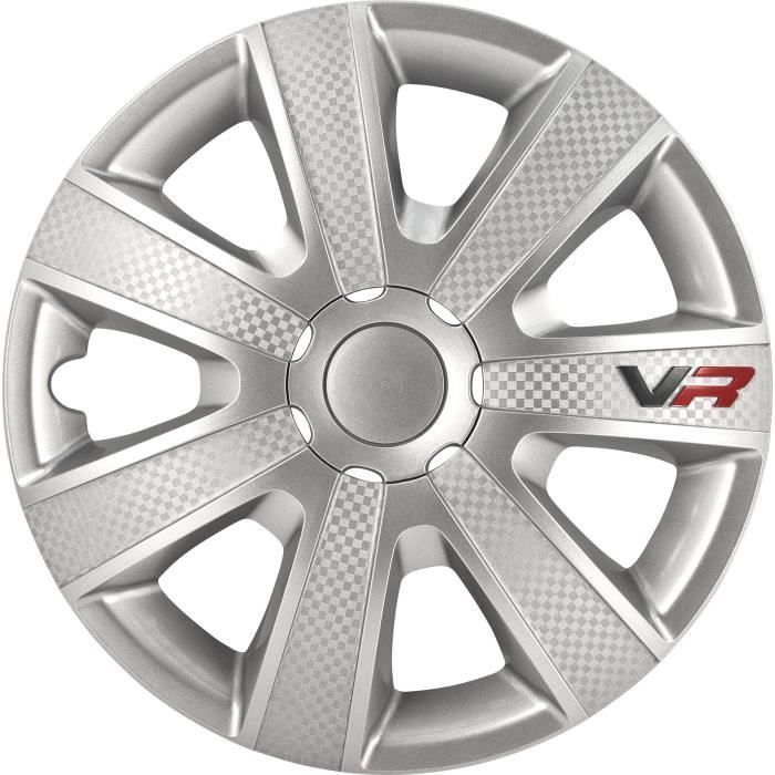 Jeu de 4 enjoliveurs vr 15'' argent look carbone + logo