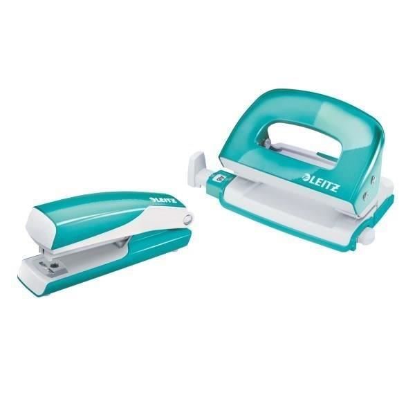 Set agrafage WOW complet pret a l'emploi comprenant 1 agrafeuse métallique brillant 20 feuilles. 1 perforateur métallique brillant 20 feuilles et 1 boite de 1000 agrafes n°10. Couleur Menthe.