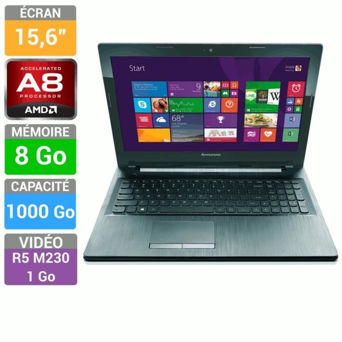 Ordinateur portable avec écran 15,6" HD Noir - Processeur AMD A8 6410 - Mémoire 8Go - Stockage 1To - AMD Radeon R5 M230 1Go dédiés - Graveur DVD +/- RW - Wi-Fi - Bluetooth - Caméra 720p - Lecteur multicarte 2-en-1 - 2 USB 2.0 - 1 USB 3.0 - HDMI - VGA - Ethernet 100/1000 - Clavier AZERTY - Windows 8.1 - Garantie 1 an