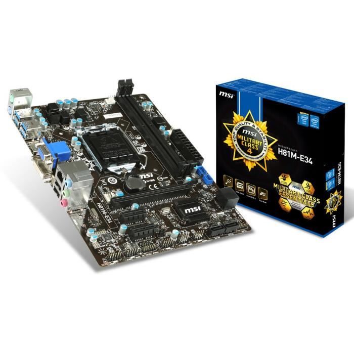 Carte mere socket LGA 1150 - Chipset Intel® H81 - 2 slots DDR3 - PCI Express 3.0 - SATA II & III - Gigabit LAN - USB2.0 / Audio HD - VGA / HDMI - Format Micro ATX - Réf. H81M-E34