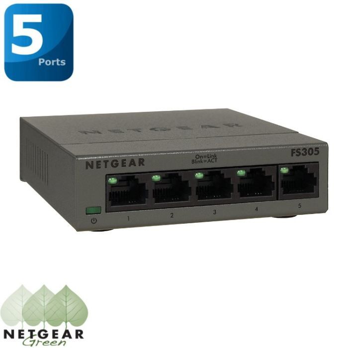 Switch 5 ports 10/100 - Boîtier en métal - Étendre sa connexion réseau a plusieurs périphériques instantanément - Technologie Auto-MDI/MDIX - Gestion automatique et optimale de la vitesse entre le switch et les périphériques - Plug and Play - Netgear Green - Garantie 3 ans