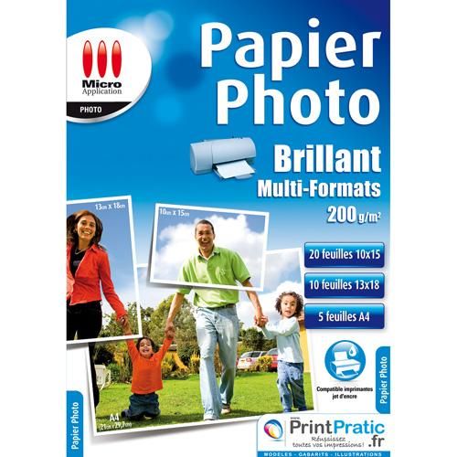 Micro application - Papier imprimante Papier Photo - Brillant - Multi-Formats