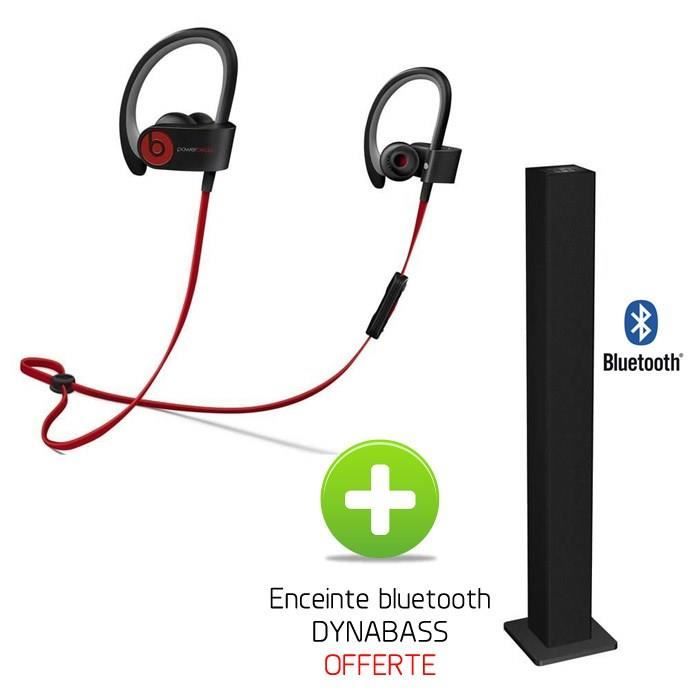 BEATS AUDIO Ecouteurs sans-fil PowerBeats noir + Enceinte bluetooth DYNABASS DBT30 OFFERTE - Systeme de transmission sans fil - Clips d'oreille ajustables grâce a leur tige flexible offrant un grand confort et un excellent maintien - Résistant a la transpiration et aux UV, idéal pour le sport en salle ou en extérieur - Ecouteurs 2 voies assurant des basses profondes, des voix extremement claires et des aigus piqués
