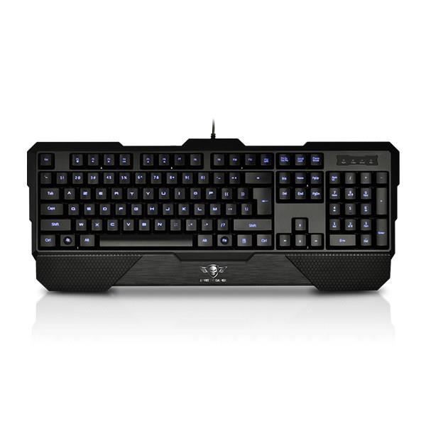 Clavier avec design ultra gaming rétro-éclairé - 104 touches + 6 touches Multimédia - Touches rétro-éclairées - Repose-poignets amovible / Type de touches : membrane, taille normale - Réglable en hauteur 1 position - Interface USB - Longueur du câble 177cm
