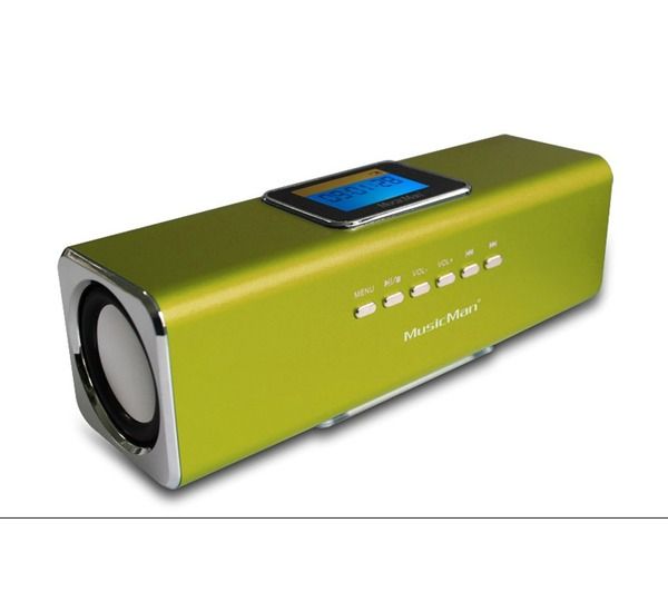 Vos morceaux de musique préférés sur carte microSD, station d'accueil, port USB ou entrée audio (3,5 mm) - même en stéréoLa Technaxx MusicMan® MA Display est équipée d'un slot pour carte microSD, d'une station d'accueil pour iPod / iPhone, d'un port USB et d'une entrée audio 3,5 mm. Elle est capable de lire directement la musique MP3 stockée sur une carte mémoire microSD, une clé USB ou un lecteur MP3 connecté dans une qualité sonore exceptionnelle.Elle est facile à transporter et à installer, ce qui en fait le compagnon idéal pour vos voyages et les déplacements. Et même chez vous, vous pouvez profiter de votre musique avec MusicMan® MA Display !Son boîtier en aluminium est des plus résistants et est disponible dans 5 coloris.Autonomie de l'accu (max.) : 5 hCouleur : vertDimensions produit, hauteur : 70 mmDimensions produit, largeur : 165 mmPoids : 272 gType de transmission : câblé