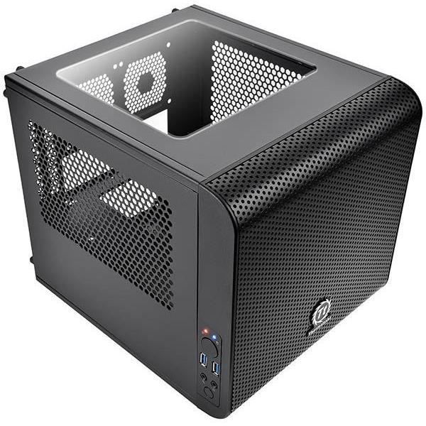 Boitier Mini cube - Pour carte mere Mini ITX - 2 slots d'extension - Ventilateurs 1x200mm - USB3.0/Audio HD - Emplacement interne 2x3,5" et 2x2,5" - Fenetre Plexiglas sur panneau (interchangeable)