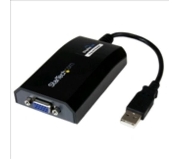 The USB2VGAPRO2 USB to VGA Adapter functions as an external graphics card for Windows® and Mac® computers - the perfect solution for turning your desktop or laptop computer into a dual or multi-monitor environment, all through the simplicity and convenience of USB.The USB-VGA Adapter delivers high quality video (up to 1920x1200) for a variety of applications and is capable of simultaneously running up to five additional displays from a single computer (using four USB2VGAPRO2 External Video Adapters). The adapter connects to a host computer through a USB 2.0 port, acting as an external VGA video card to either extend or mirror the desktop shown on the existing display - without having to open the computer case. Featuring driver support for Microsoft Windows® (including Aero themes) and Mac OS X, and with video support for resolutions up to 1920x1200, this USB-VGA video adapter is the ideal solution for a wide rade of operating environments as well as large-screen displays/monitors. The USB2VGAPRO2 USB to VGA Adapter is backed by a StarTech.com 2-year warranty and free lifetime technical support. Features Optimal performance at 1920x1200 and ideal for use with 24'''' to 26'''' monitors or smaller Support for Aero themes in Windows® Works with Mac® OS X Connect up to five adapters to one PC for a true extended desktop experience USB-Powered operation, no external power adapter required Quick and easy installation Powered by DisplayLink DL-195 chip