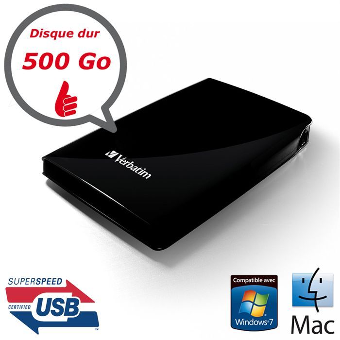 Achetez Verbatim USB Store 'n' Go 3.0 500 Go Noir 2.5'', Verbatim high-tech sur Pickture, dans les tendances Noir