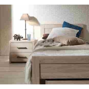 Chevet blanc ALINE avec deux tiroirs sur coulisses métaux - Un chevet tres pratique en panneaux de particules de haute qualité - Les poignées solides sont en métal brossé et le coloris est en chene clair