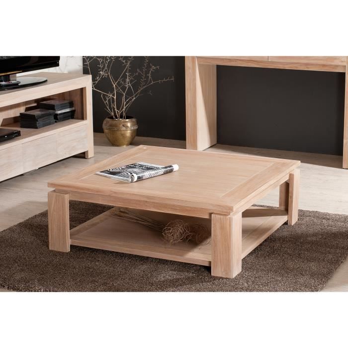 Table basse sous plateau en teck - Dimensions : 90 x 90 x 32 cm - Finition gomme laque