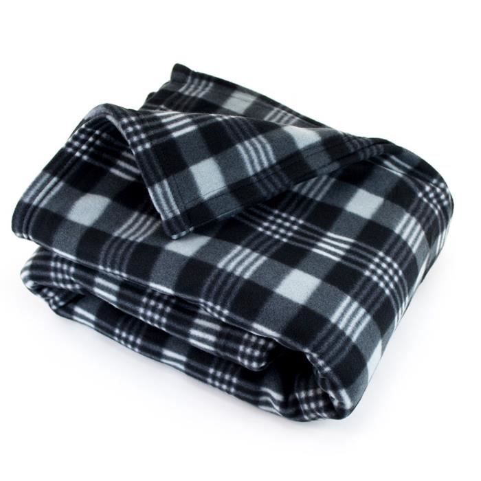 Couverture noir et gris. Tissu 100% polyester. Lavable a 30°. Bicolore. Dimensions 220x240 cm