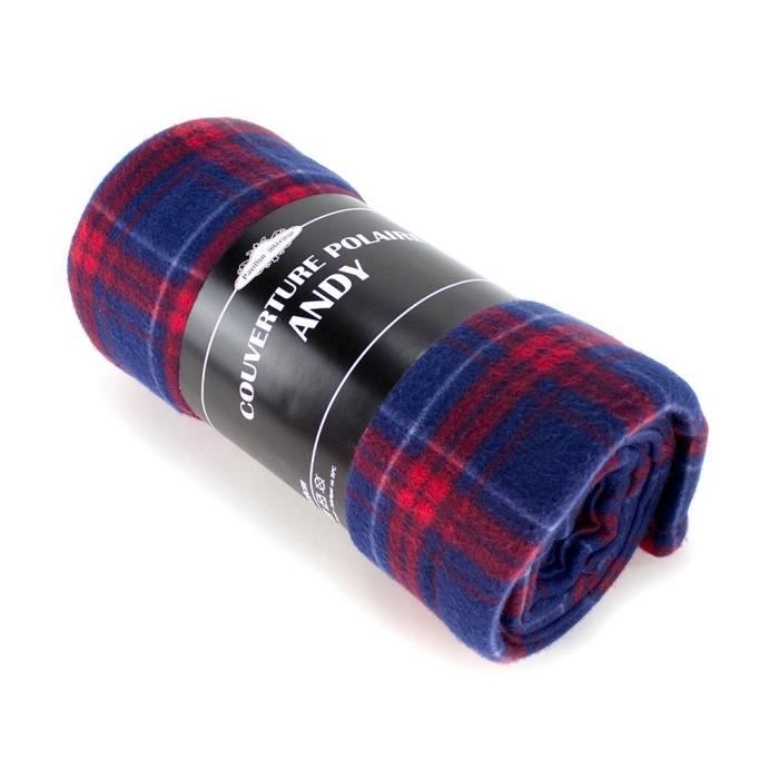 Couverture rouge et marine. Tissu 100% polyester. Lavable a 30°. Bicolore. Dimensions 220x240 cm
