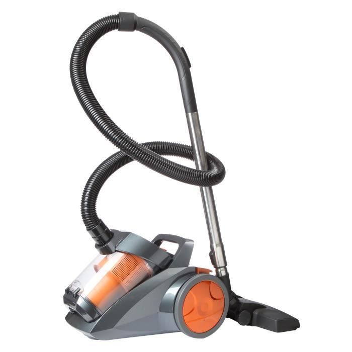 Aspirateur sans sac - Classe d'efficacité énergétique : B - Efficacité moquette : D - Efficacité sols lisses : B - Niveau sonore : 80 dB - Puissance : 1000 W - Qualité de filtration de l'air : G - Brosse double position - Capacité : 4L - Couleur : argent et orange
