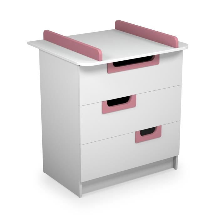 Commode avec plan a langer amovible - Coloris Blanc avec poignées Roses - Dimensions : 79 x 54 x 85 cm - Des la naissance - Livré a l'unité