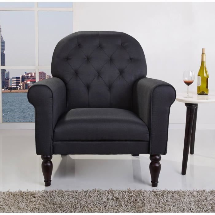 AUGUSTE Fauteuil avec accoudoirs 85x85 cm - Tissu - Noir