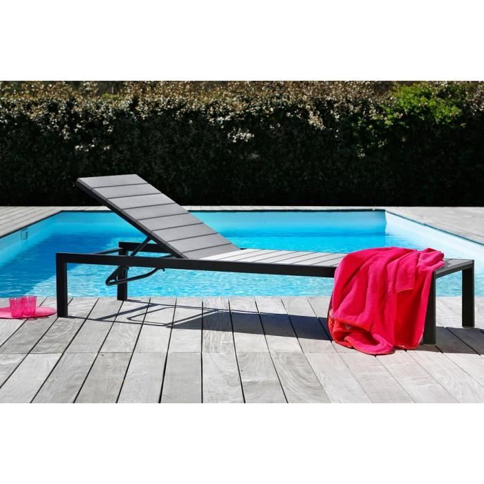 Transat en aluminium gris et nowood ( résine synthétique imitation bois ) gris - Structure aluminium tres résistante - Inoxydable, résistant a l'eau salé et facile a transporter.