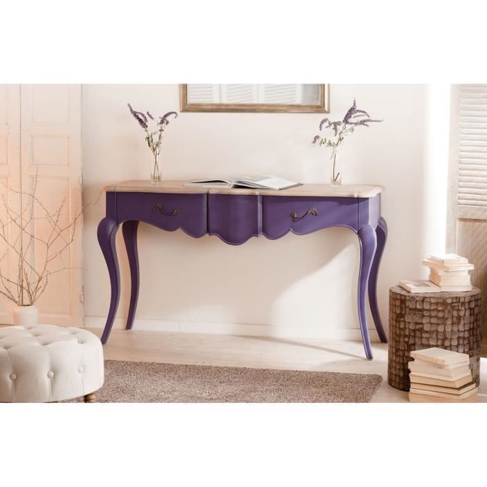 • BILBAO Console en manguier 2 tiroirs violet pop