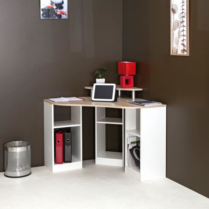 • BOBBY Bureau d'angle décor chene naturel et blanc