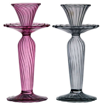 Bougeoir en verre H15.8 cm 2 coloris assortis rouge