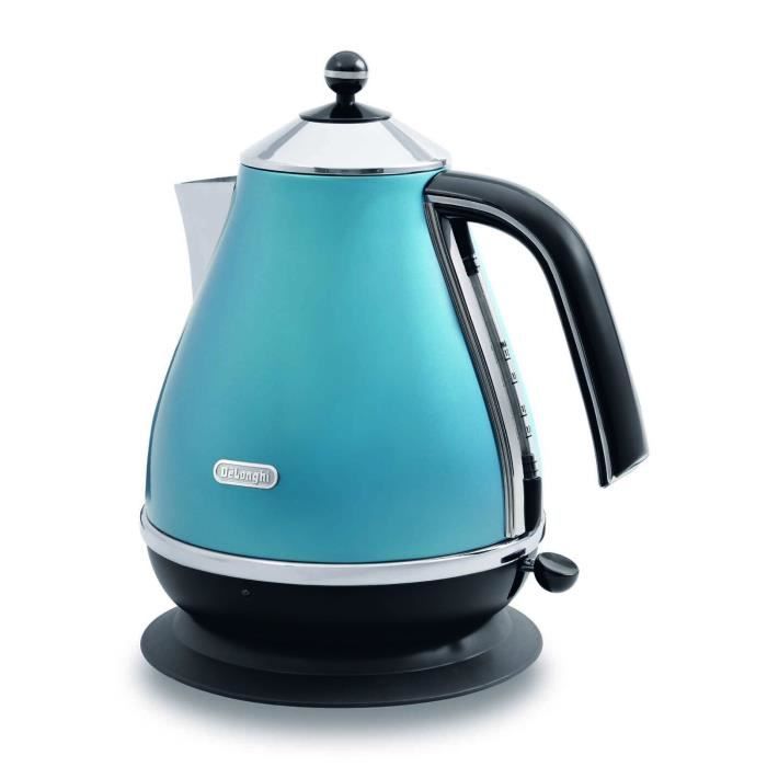 Bouilloire sans fil - Puissance : 2000 W - Capacité : 1.7 L - Rotation de la base a 360 - Indicateur de niveau d'eau - Filtre anti-calcaire amovible et lavable - Résistance cachée en inox - Arret automatique - Pieds anti dérapant - Range cordon - Coloris Bleu azur glossy avec finition chrome